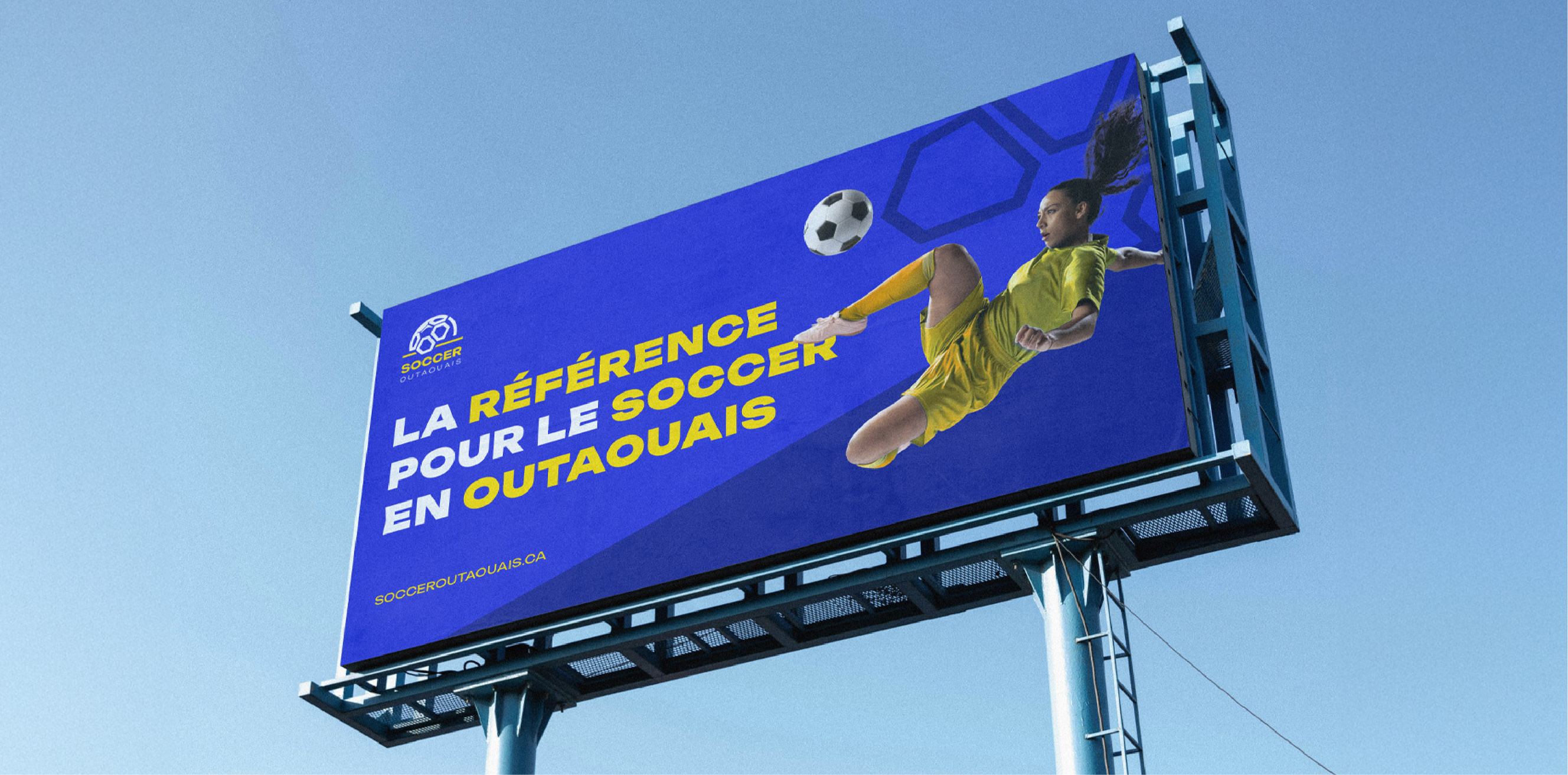 Soccer Outaouais devait élever sa perception de marque pour être pris au sérieux par les grandes organisations sportives comme Soccer Québec et Soccer Canada. Le défi : moderniser l'identité sans perdre l'essence régionale, créer une image professionnelle qui inspire confiance aux instances nationales tout en restant accessible et inspirante pour les milliers de jeunes joueurs et familles de l'Outaouais. Il fallait respecter l'héritage (les couleurs iconiques bleu et jaune) tout en projetant une vision de leadership contemporain. En d'autres mots : transformer une organisation locale solide en acteur incontournable du soccer québécois, capable de jouer dans la cour des grands.